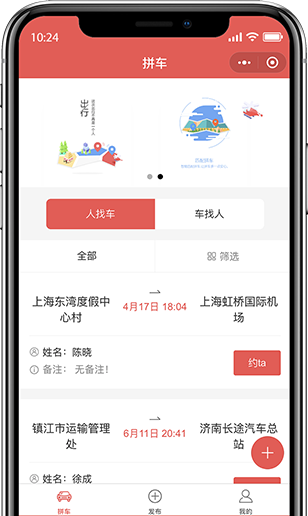 拼車模塊分車找人和人找車兩種模式,進(jìn)入小程序后用戶只需要輸入自己的具體位置和目的地,將信息進(jìn)行提交后,小程序會(huì)將發(fā)布信息上傳至平臺(tái),尋找相匹配的私家車或者乘客。